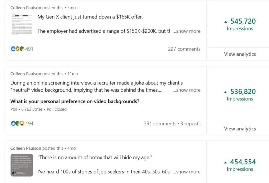 I've helped 100s of executive clients with positioning strategies - some of them have never posted and are just looking to build a strong profile to attract potential opportunities. Others have utilized posting to grow both their personal and corporate presence.